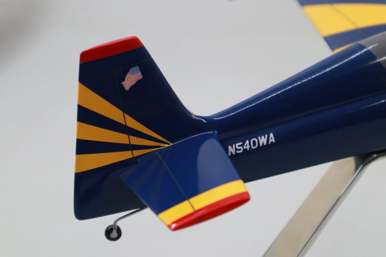 The Zivko Edge 540 aircraft model is a highly aerobatic aircraft. Capable of a 420 degree per second roll rate and a 3,700 foot per minute climb rate, it has been flown to victory on the international Unlimited aerobatics circuit several times since the mid-1990s. No matter how sophisticated your Aircraft Models Livery may be, Modelworks is bound to replicate your Airplanes graphics perfectly. Call Toll Free for a free quote today: 1-844-8MODELS
