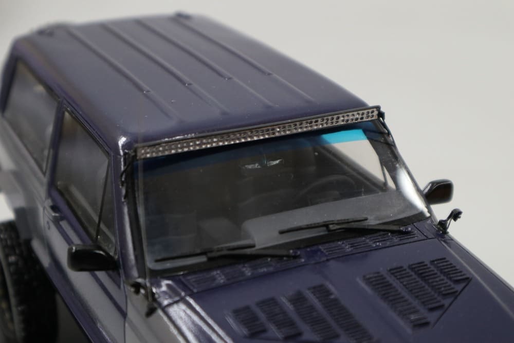The Cherokee’s identity is rooted in proportion and stance. The upright greenhouse, squared wheel arches, short overhangs, and balanced ride height define its visual language. These qualities translate exceptionally well into scale when handled with discipline. But they also expose careless modeling immediately. Roof height, track width, and window geometry must be right or the character disappears.